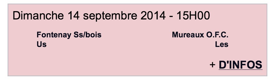 Dimanche 14 septembre : USF (Excellence) - Les Mureaux (DH) - 15h au Stade Le Tiec